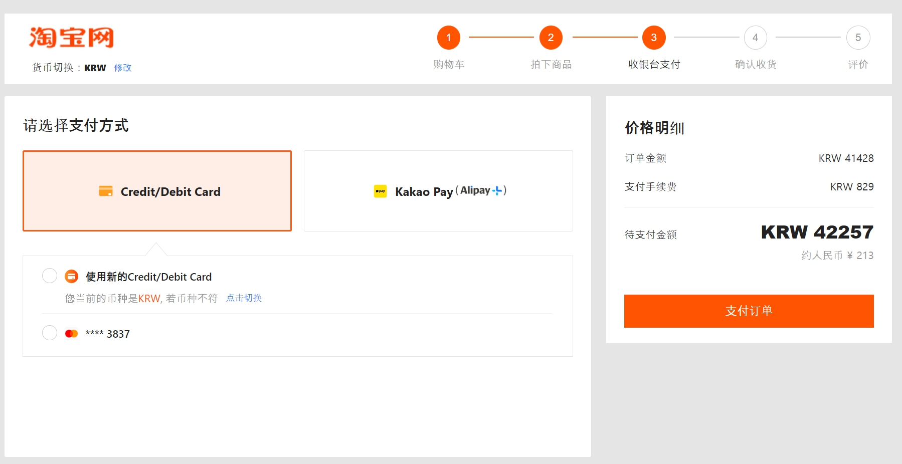 타오바오 결제는 결제금액에 따라 2~5% 수수료가 발생합니다.