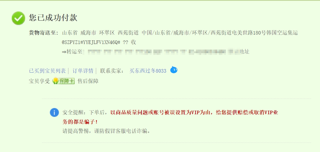 저는 합배송 국제배송을 선택했기 때문에 판매자는 타오바오 국제 합배송 창고로 배송을 하게 됩니다. 합배송 창고에 모두 도착하면 구매한 제품의 모두 합하여 무게를 재고 해당 무게에 따라 국제 배송료가 결정됩니다. 결정된 배송료를 결제하면 국제 배송이 시작됩니다.