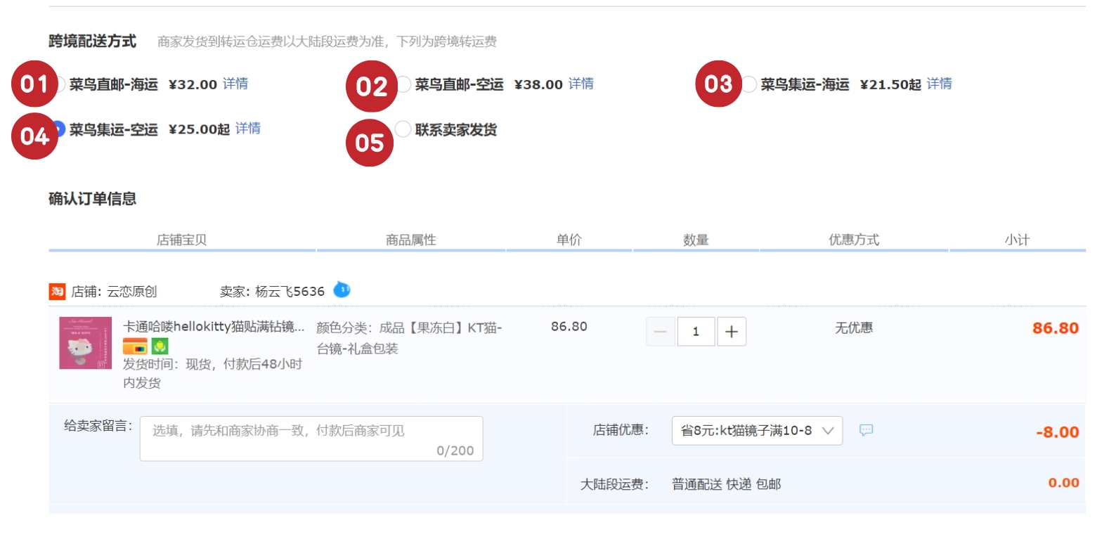 저는 2개를 구매했으므로 합배송 항공방식을 선택했습니다.