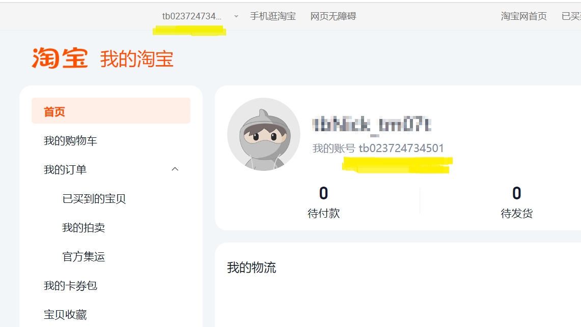 tb로 시작하는 것이 타오바오에서 부여해준 타오바오 아이디입니다.