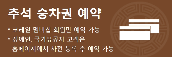 - 전화 예매: 1544-8545 (교통약자만 해당)